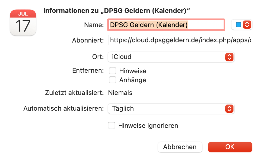 Wir verwalten unsere Termine in unserer ebenfalls auf dpsggeldern.de gehosteten Cloud; von wo sie aus öffentlich einsehbar und auch abonnierbar sind.